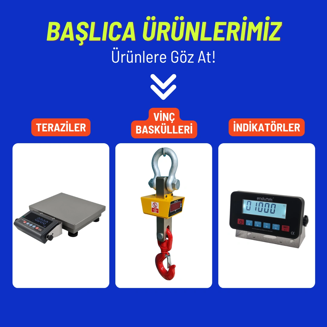 Yenilikçi çözümler, kaliteli hizmet anlayışı ve teknolojik altyapısıyla; terazi, kantar, vinç baskülü, loadcell ve endüstriyel tartım sistemleri alanında güvenilir bir marka haline gelen Endutek, bugün Türkiye’nin önde gelen tartım teknolojisi firmalarından biridir.